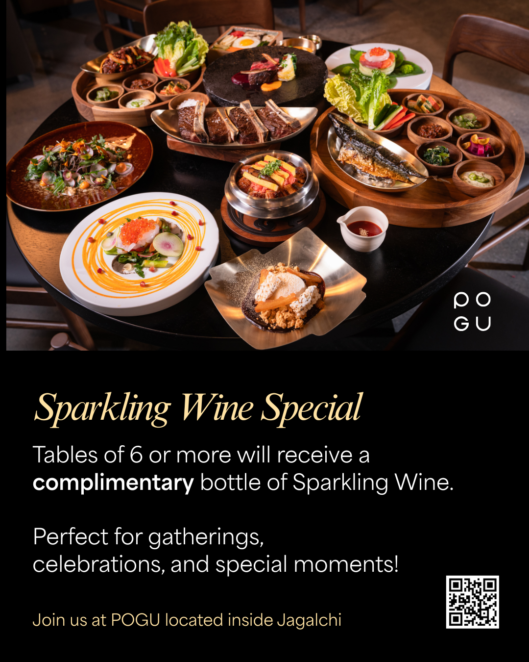 This new limited time promotion offers a complimentary bottle of Sparkling Wine for tables of 6+ people when they dine with us.